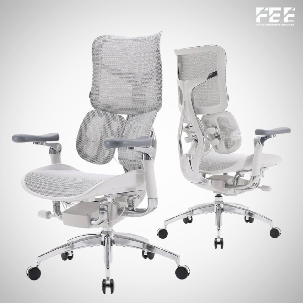 Za one koji žele kvalitetnu stolicu za kancelariju, ali traže pametno ulaganje, FEF stolice vlastite proizvodnje nude odličan balans između ergonomije, dizajna i cijene. Stolice su pažljivo izrađene od izdržljivih materijala, s ergonomskim naslonima i podesivim sjedištima, što doprinosi udobnosti tokom cijelog radnog dana. Prednost FEF stolica je lokalna proizvodnja, što omogućava brzu dostupnost, jednostavno servisiranje i prilagodbu potrebama kupca. Ove stolice savršeno odgovaraju timovima srednje veličine i kompanijama koje žele kvalitetan namještaj bez kompromisa na ergonomiji.